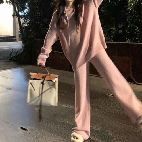 슈팅스타 / 캐주얼 후드넥 루즈핏 니트 와이드 니트 코디세트 팬츠셋업 C -3011
