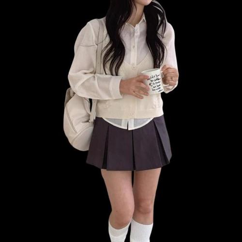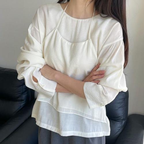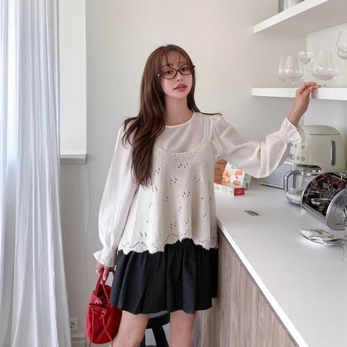 [다잇템]여자 코르셋 블라우스 소매 잔주름 스웨터 세트