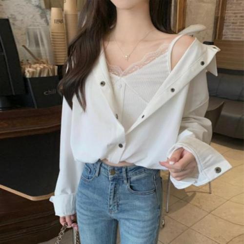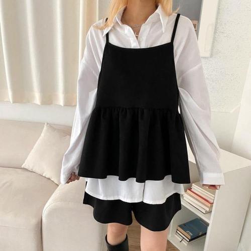 [다잇템]여자 탱크 볼드숄더 프릴 코르셋 블라우스