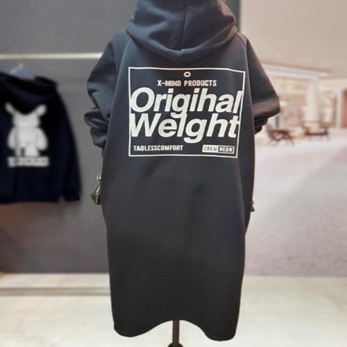 [비바앤코코넛]기모 베이직 프린트 후드 롱 원피스