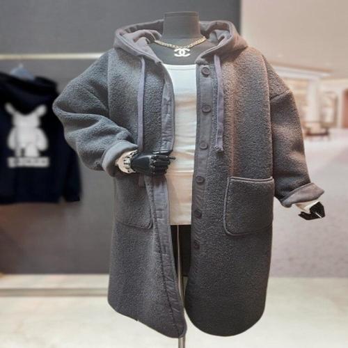 [비바앤코코넛]부클 후드 루즈핏 포켓 롱 자켓