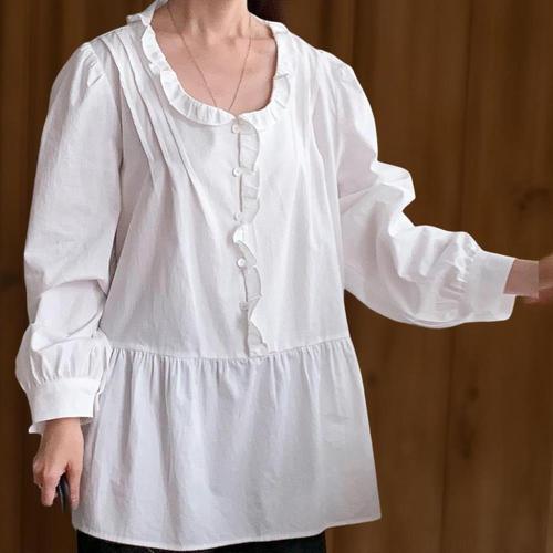 [신상오픈런]여자 가을하객룩 프릴 퍼프 빅사이즈 유넥 면 블라우스