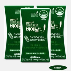 BNR17 유산균 비에날씬 다이어트 체지방 감소 유해균 억제 배변활동 원활, 3개, 60정