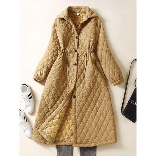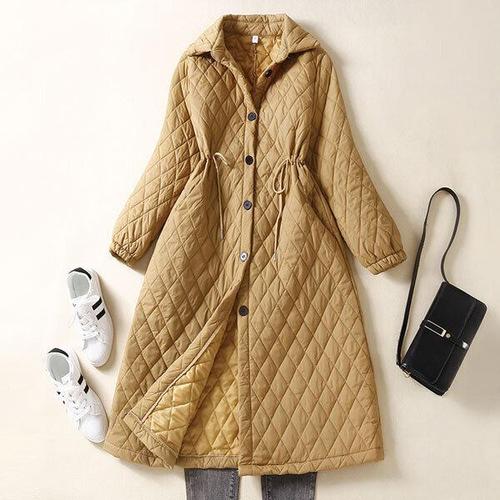 [드리다]여성 겨울 체크 카라 빅사이즈 누빔 롱 마이 자켓 40-50대 미시 중년여성 엄마옷 하객 출근 모임