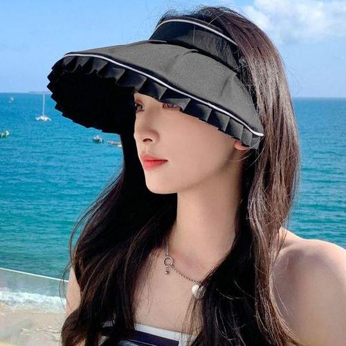 [에이치플러스몰]프릴리즈 크로스백 썬캡 와이드 스트랩 여름모자 블랙