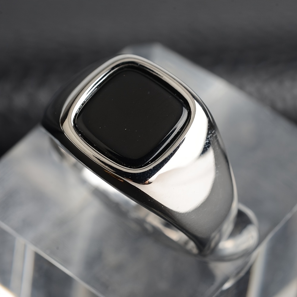 TEMU 1개 유럽 및 미국 스타일 심플 남성용 라운드 스퀘어 링, 변색 없는 패션 한국 버전