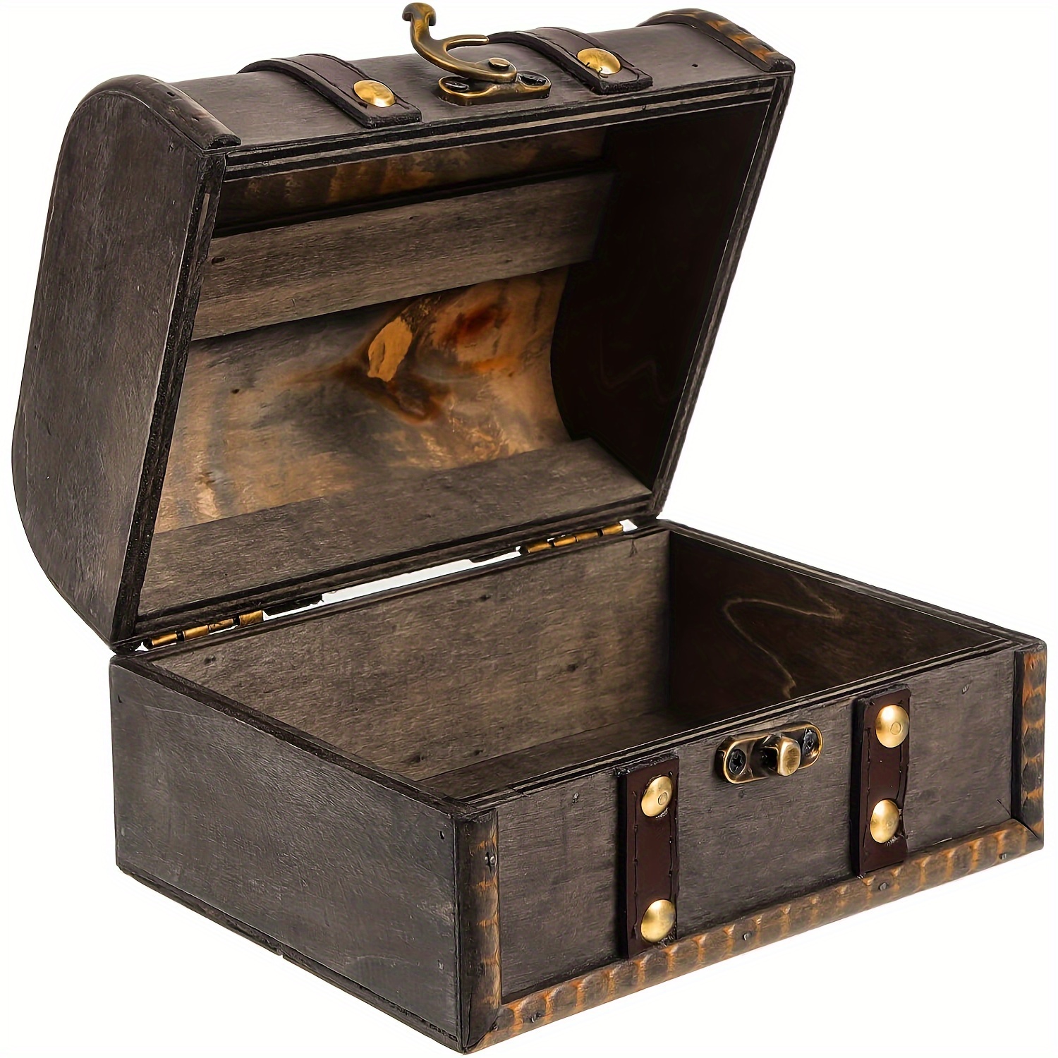 TEMU 빈티지 고체 목재 느낌 자물쇠 상자 - 열쇠 잠금 및 힌지, 보석 보관함, 목걸이 보관, 데스크탑 수납용 (목재 무늬 페인트 마감) - 튼튼한 직사각형 보석함