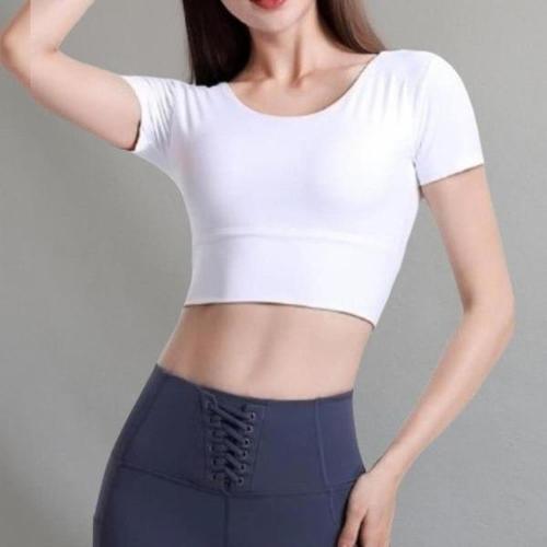 [신상오픈런]|CCT9933|여성용 스판 크롭 반팔 라운드넥 트레이닝 티셔츠_23067389_597559