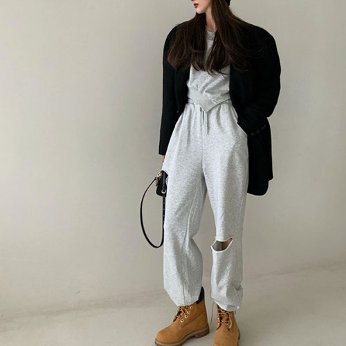 [셀러허브_여성트랜드패션]ONM 팬츠 와이드 트레이닝 크롭 투피스 후드 여성