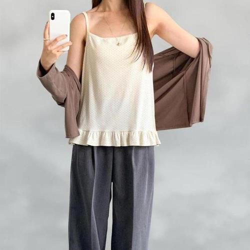 [다잇템_패션]여성 큰사이즈 편한 프릴 땡땡이 탑 끈 나시