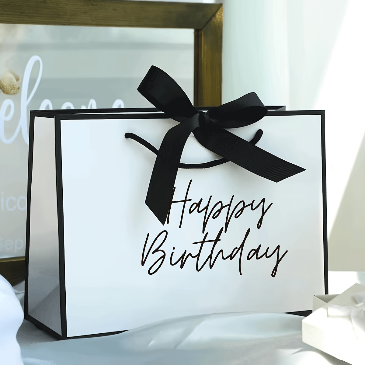 TEMU 1개 해피 버스데이 선물 가방 - 우아한 생일 파티용 토트백, 여성, 엄마, 할머니를 위한 경량 접이식 쇼핑 토트백 - 생일 파티 장식, 선물 포장 - 블랙 & 화이트 생일 장식, 생일 선물, 축하 액세서리, 리본 장식, 튼튼한 구조, 이벤트 정리자, 스타일리시 패키징, 내구성 있는 소재, 여성 선물