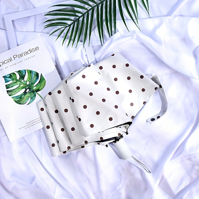 TEMU 1개 투인원 도트 패턴 선&레인 우산 - 8-리브 수동 오픈 컴팩트 접이식 우산, 블랙 고무 & 우아한 디자인, 여행, 출퇴근, 해변, 야외 활동용, 스타일리시 액세서리, 내구성 있는 캐노피