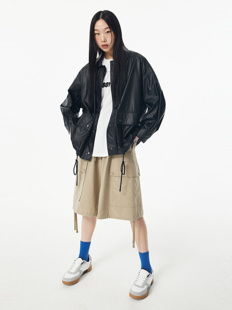 STUDIO TOMBOY 신세틱 레더 스트링 자켓 - 크림 270286