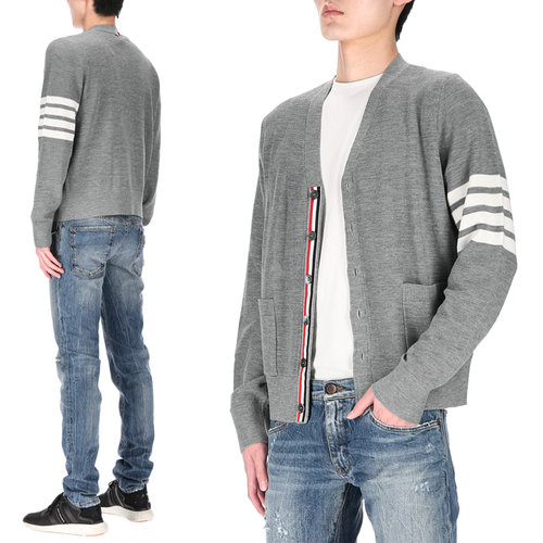 [톰브라운] 메리노 울 사선 클래식 가디건 미디움 그레이 MKC002A Y1014 038