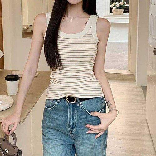 [모노무드]LMO 투톤 세로줄 슬리브리스탑 스테디