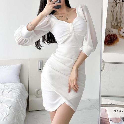 [옷자락]여자 FW V넥 연말 슬림 보온 튤립 원피스