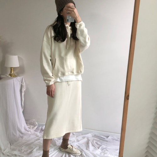 더클립 / 캥거루 기모 후드 트레이닝 + 스커트 set