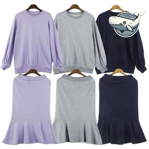 싱싱덴덩 트레이닝 세트 여성 초가을 솔리드 캐주얼 데일리 맨투맨 스커트 상하복