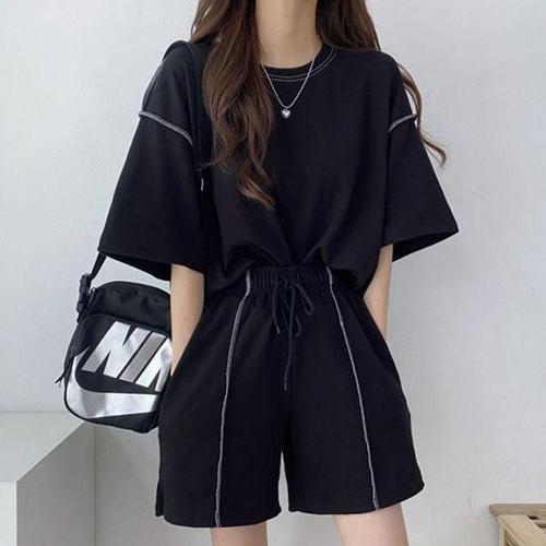 [에이치플러스몰]무지 여성 캐주얼 반팔 반바지 필수템 트레이닝 세트