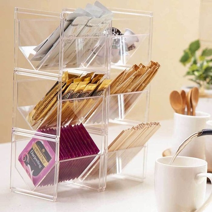 탕비실정리함 아크릴 수납 보관함 투명 티백 약정리함 사무실 커피정리함, 1개, 블랙