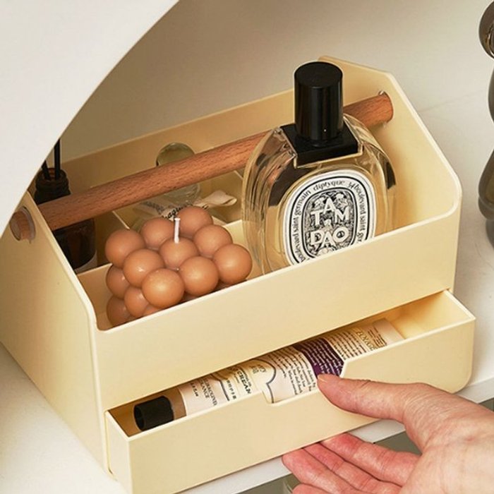엄지척 화장대 소품 욕실 책상 티백 수납 정리 함 진베이지