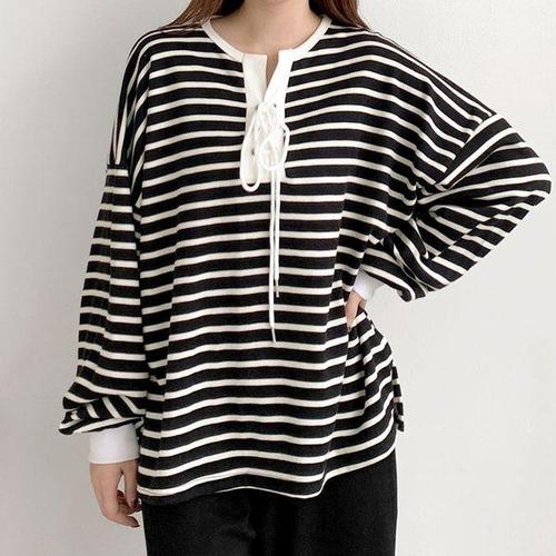 [신상오픈런]여자 아일렛 레이스업 단가라맨투맨 와이드 바지 세트