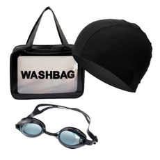 렌버핏 물아일체 프리미엄 스판수모+수경+수영가방 세트, 수모(블랙)+수경(블랙)+수영가방(블랙)