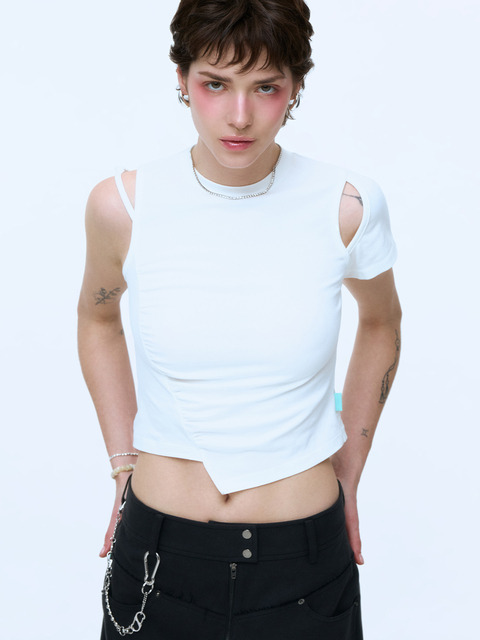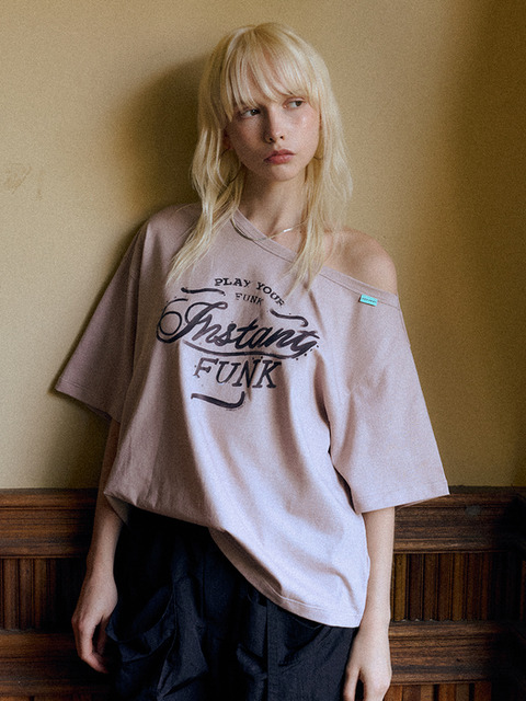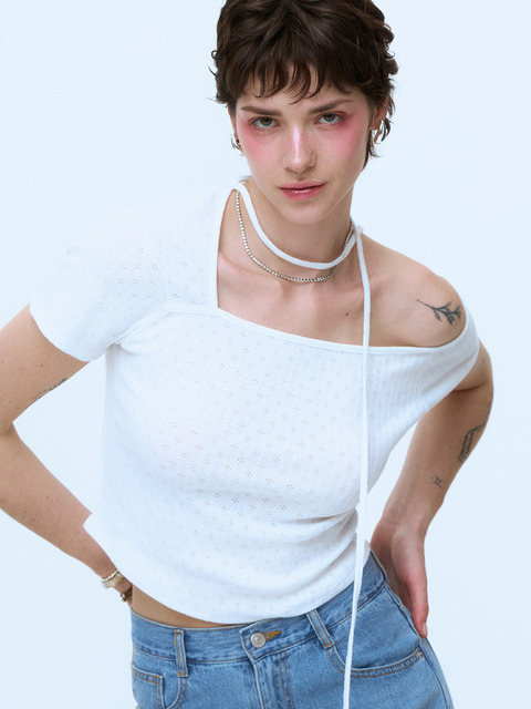 [인스턴트펑크] 리본 원숄더 반팔 - 아이보리