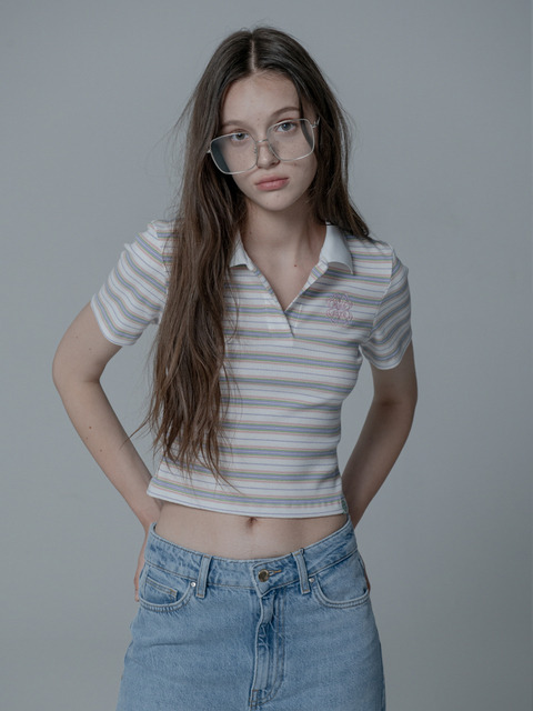 [마스 언 에브릴] [앨리스펑크 PICK] 캔디 스트라이프 카라 크롭 티셔츠 아이보리