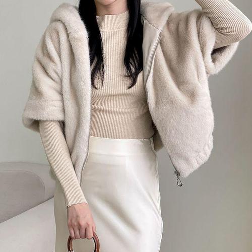 [옷자락] 여자 페이크퍼 나그랑 소프트 겨울 반팔 후드집업