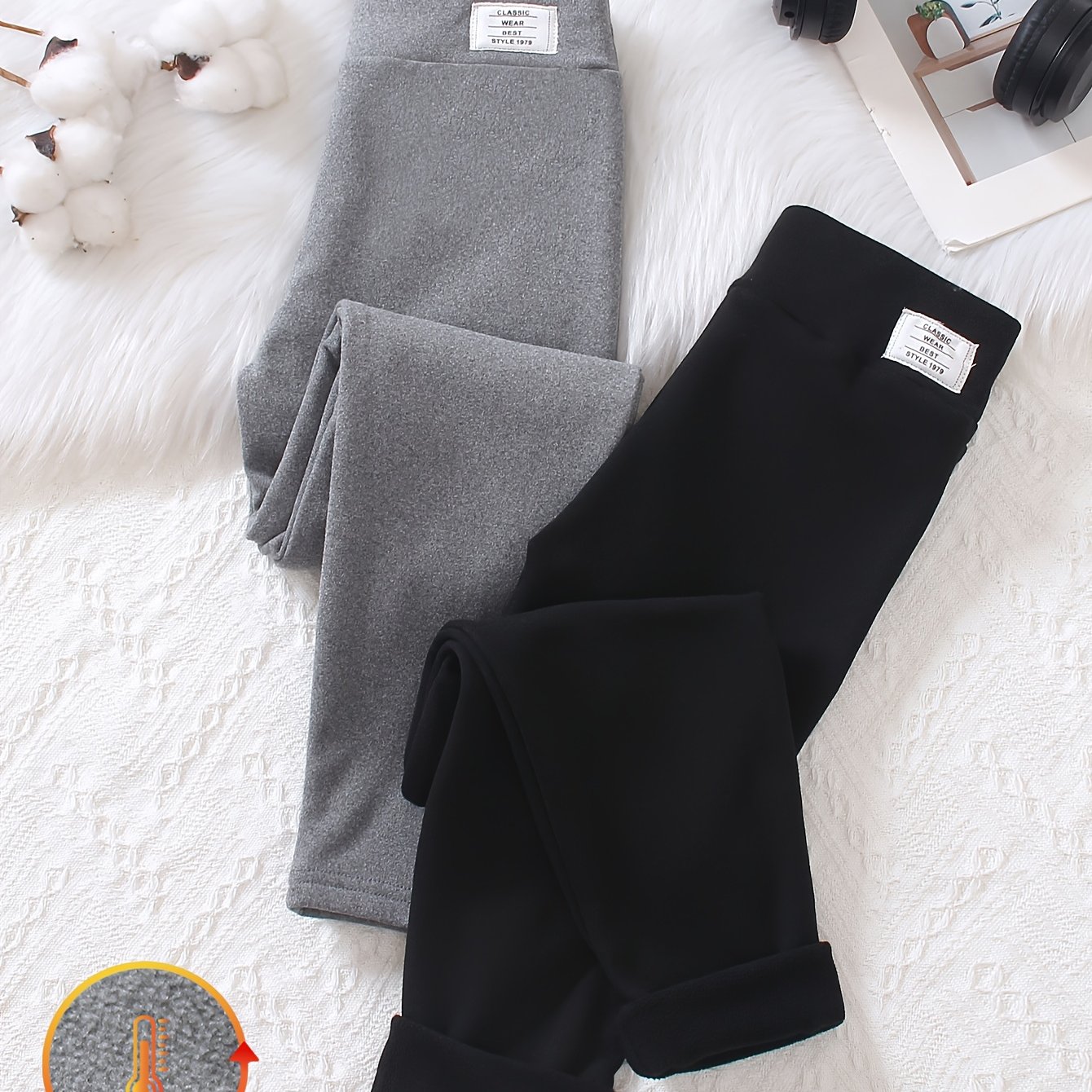 TEMU 여아용 두피스 세트: 가을과 겨울을 위한 패션적인 단색 플리스 안클 레깅, 야외 활동에 적합합니다.