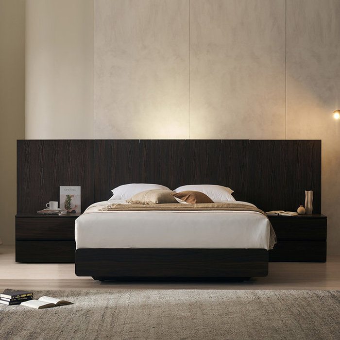 장인가구 [비밀특가] 까르뎅차콜 E0등급 LED 호텔 평상형 침대 프레임 퀸 Q+협탁2(800,800)