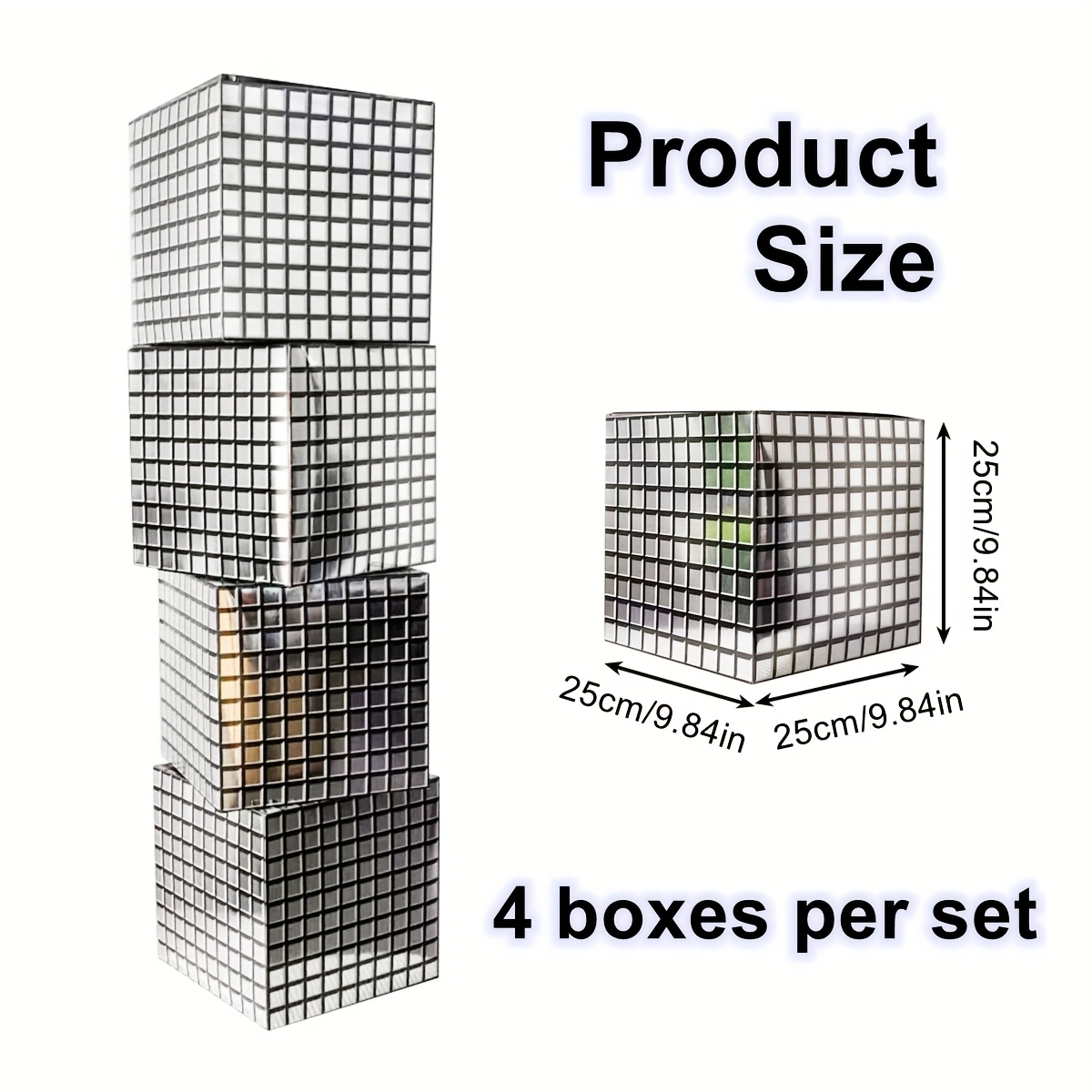 TEMU 4개 실버 큐브 풍선 박스, 파티 장식 사각 상자, 이벤트 축하 소품, 할로윈 , 크리스마스 장식, 테마 파티용 풍선, 세례식 풍선