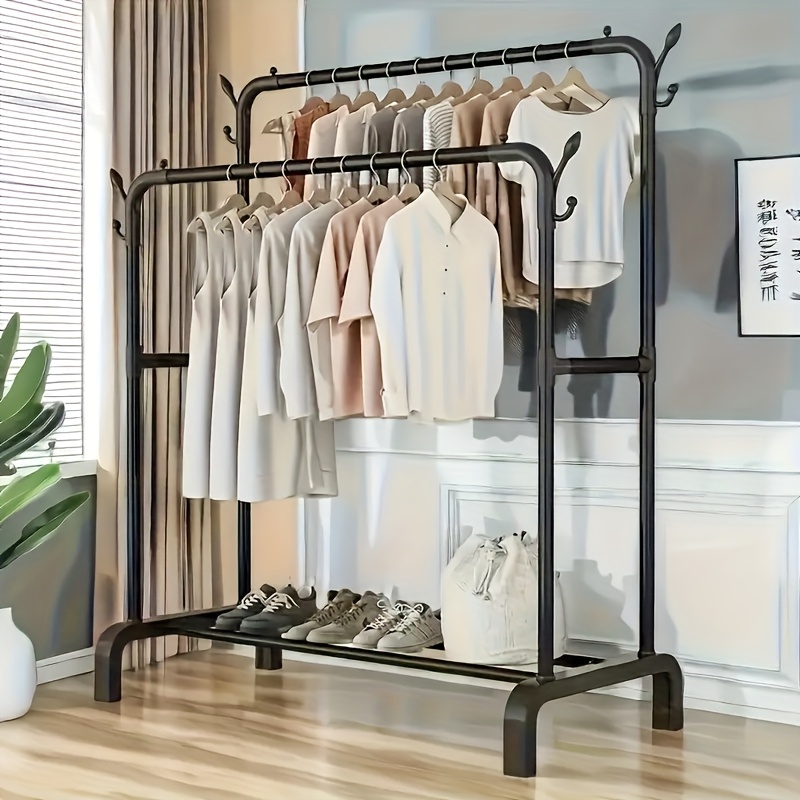 TEMU 1개 헤비듀티 스탠딩 옷걸이 - 공간절약형 강력한 금속 프레임, 간편 조립 침실/욕실/세탁실용 옷장 정리대, 아파트/집/사무실용 블랙 수납랙, 미니멀 디자인, 견고한 구조, 생활용품 정리