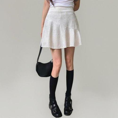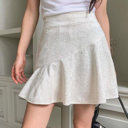 [미라클세븐]여성 스웨이드 플레어 미니 스커트 절개 디자인
