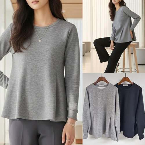 해피유통 여성 봄가을 부드러운 라운드넥 긴팔 탑 미세 플레어 소매 디자인 슬림핏 XG24