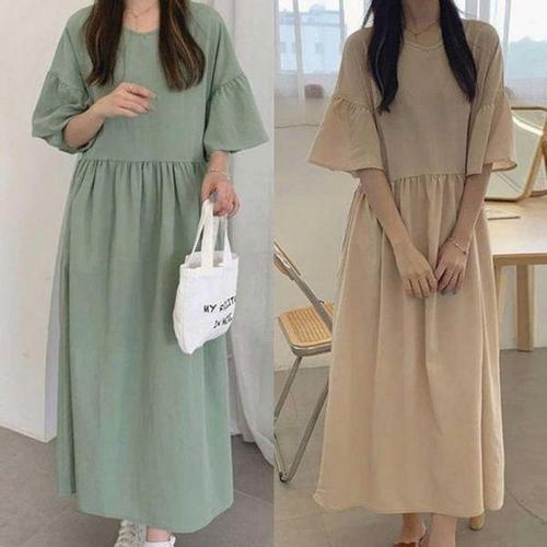 [에이치플러스몰]라운드넥 인기 원피스 프릴 와이드소매 감성 플레어
