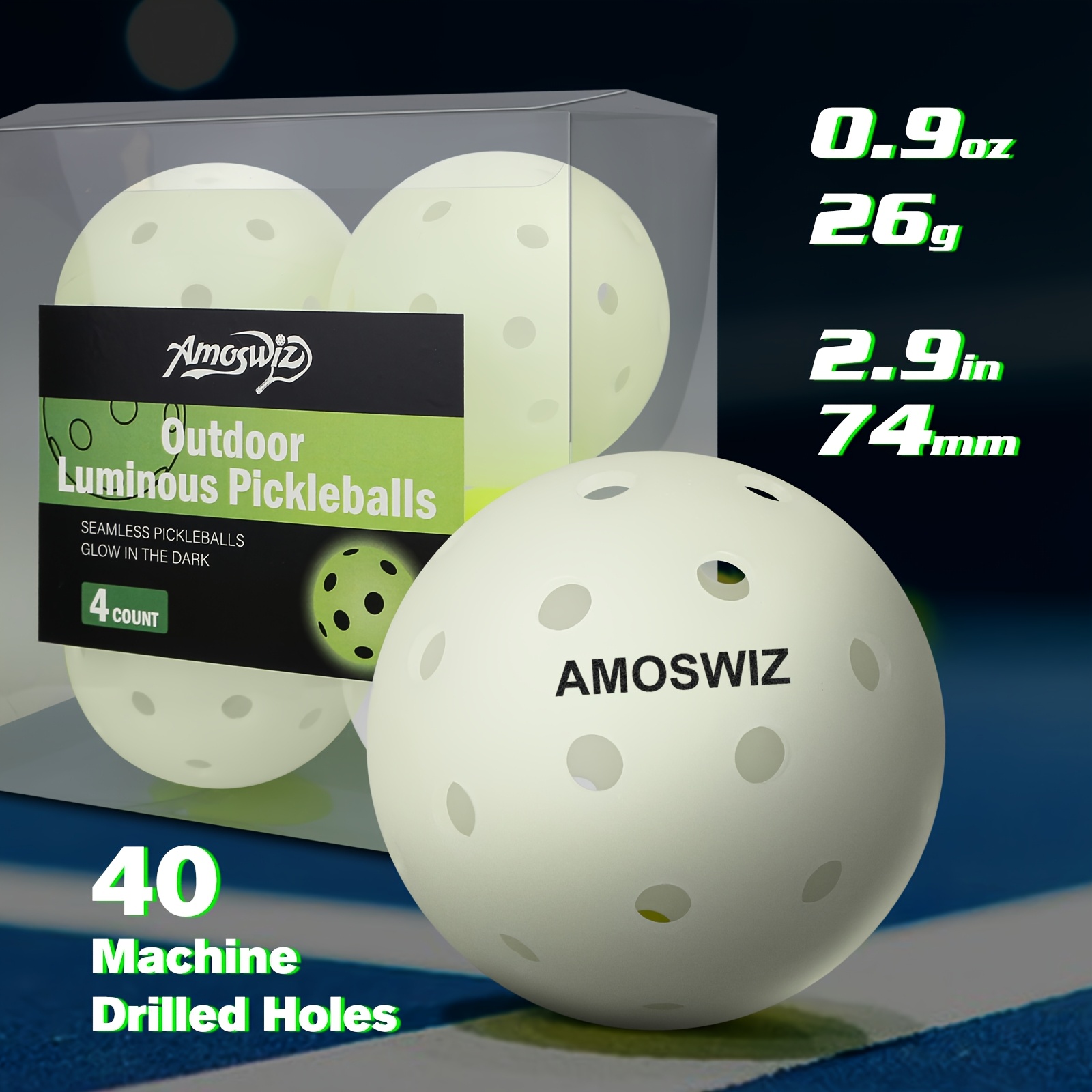 TEMU 야광 픽클볼, 업그레이드된 무봉제 야외용 픽클볼 4개 세트, 고가시성 & 내구성