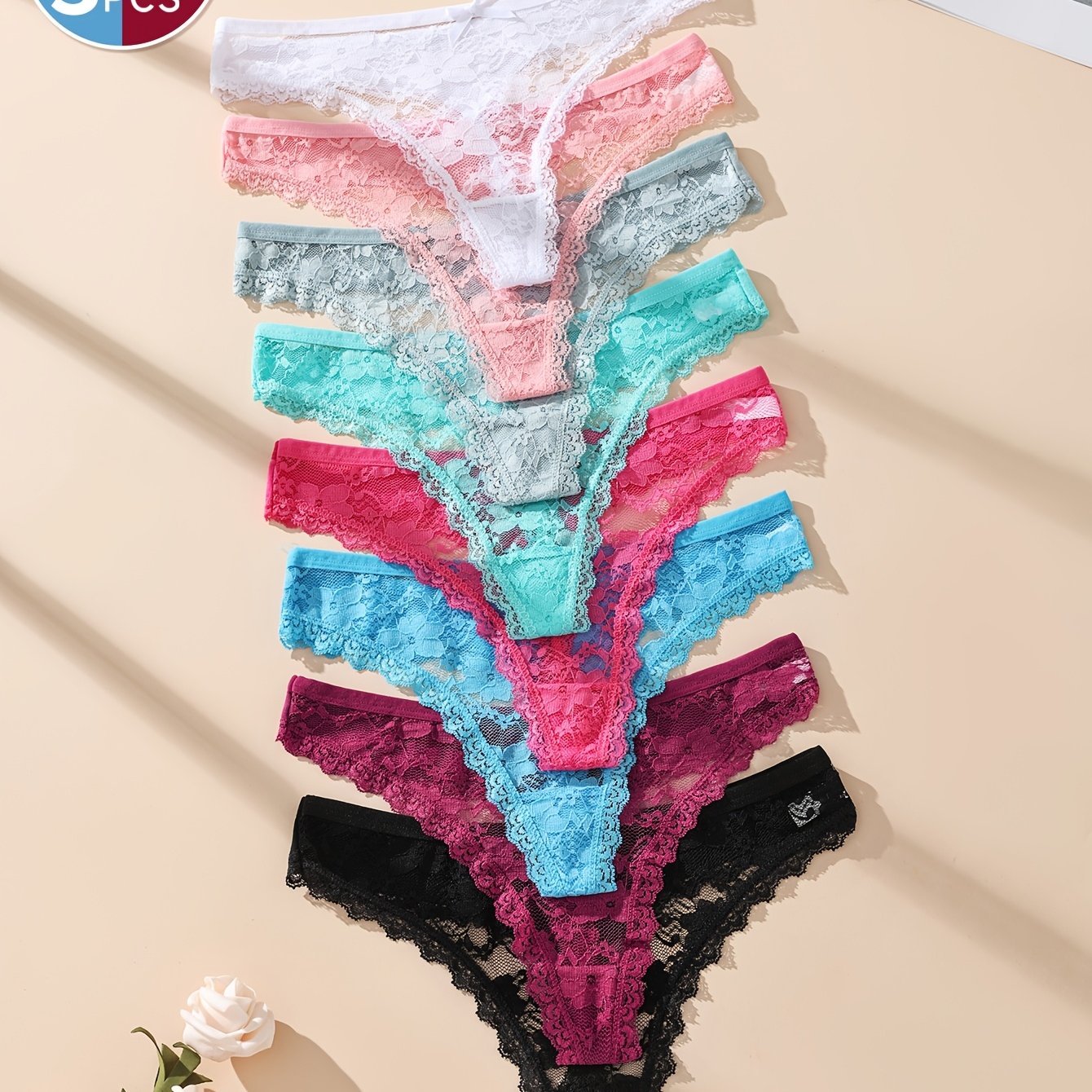 TEMU 봄/여름용 초박형 섹시 레이스 여성 팬티 5종 세트입니다. 편안하고 스타일리시한 디자인의 미드 라이즈 핏이 특징입니다. 확장형 ґузет 디자인으로 세척이 용이하고 변형이 적어 오래 사용할 수 있습니다.