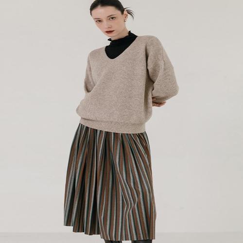 [막스까르띠지오]에스닉 스트라이프 플리츠 롱스커트