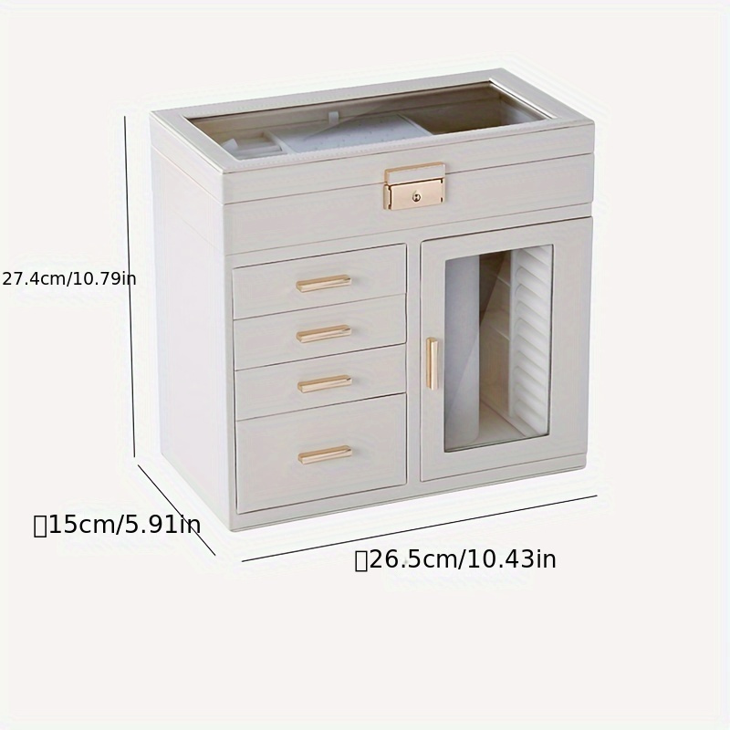 TEMU 1개 케이스그레이스 대용량 보석 정리함 360° 회전 후크, 투명 플립 뚜껑 & 다중 서랍 수납 - 목걸이, 반지, 귀걸이, 시계, 헤어 액세서리용 우아한 화이트 인조 가죽 데스크탑 보관함, 26.5cm/10.43인치, 여성 생일 크리스마스 선물, 패브릭 내부, 주얼리 박스, 시계 보관 케이스|링귀걸이
