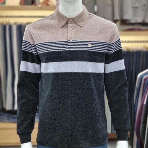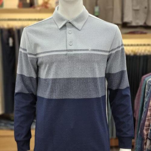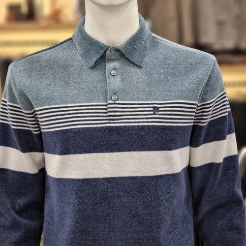 [피에르가르뎅]셔닐 스트라이프 요꼬 카라 기모 티셔츠 PPTS4404