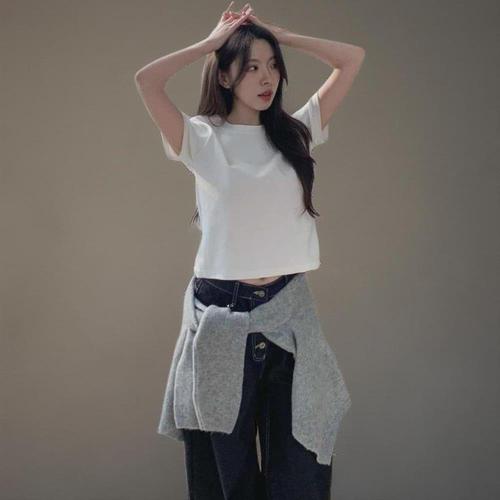 [다잇템_패션]여자 미니멀리즘 피치기모 데일리 환절기 반팔