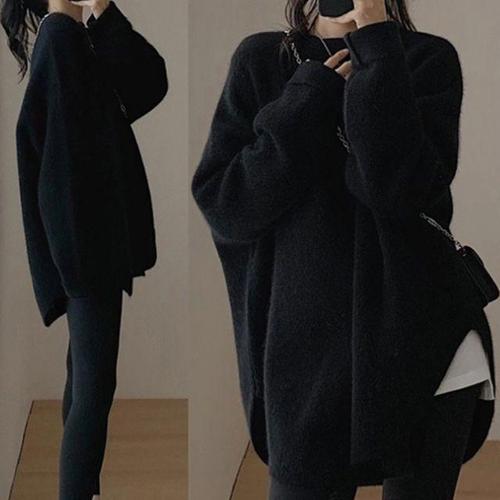 [모노무드]LMO 모던 일상용 여자 와이드핏원형넥 데일리 장팔 롱기장 니트웨어