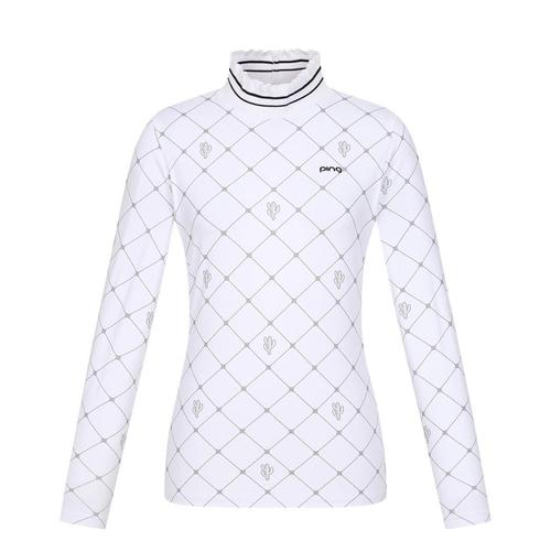 [핑]골프 여성 선인장 패턴 반목 긴팔 이너 티셔츠 121E3TI051-WH_BP