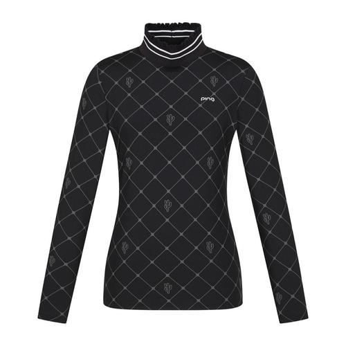 [핑]골프 여성 선인장 패턴 반목 긴팔 이너 티셔츠 121E3TI051-BK_BP