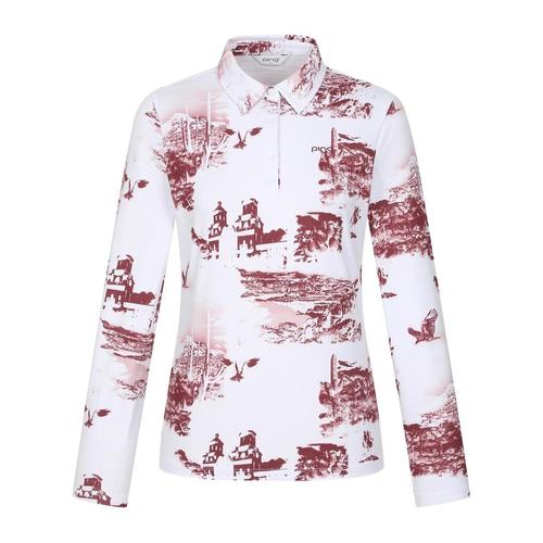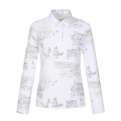 [핑]골프 여성 프린트 카라 긴팔 티셔츠 121E3TO181-WH_BP