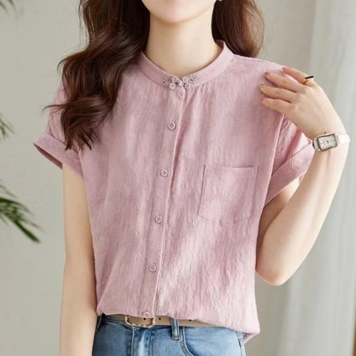 [드레스허그] 그린 앤 핑크 반소매 블라우스_250405_SY11