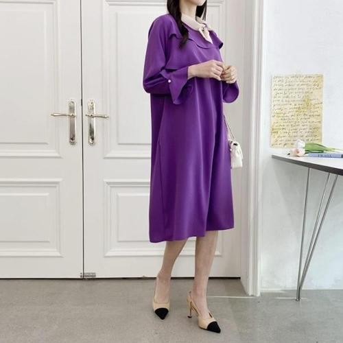 신상 쉬폰 원피스 패션 라운드 루즈핏 레이스 케이크 스커트 여성 오피스 통근 원피스.. 250310PL62