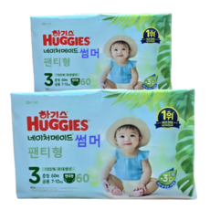하기스 2025 네이처메이드 썸머 슬림 팬티형 기저귀 유아용, 60매, 7단계